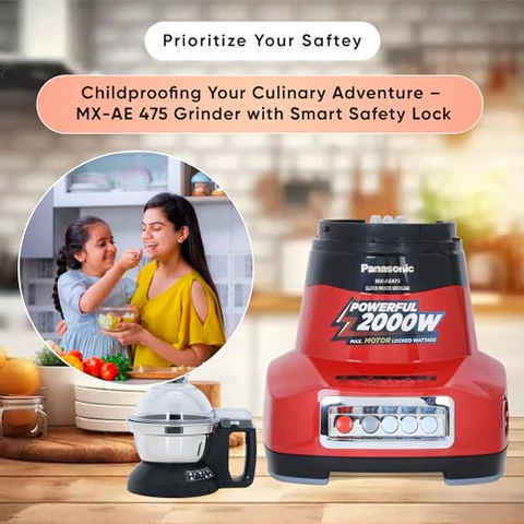 Panasonic MX-AE475 (Red) | Monster 750 Watts Juicer Mixer Grinder |With 3 Stainless Steel & 1 Juicer Extractor Jar|2 Years Product & 5 Years Motor Warranty |
