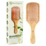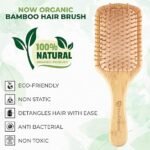Now Organic Brand Premium Bamboo/wooden paddle hair brush with cushioning for women, men and girls with round bamboo soft hair bristles for massaging scalp.